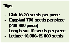 3. Seed Storage, seeds much be kept in the dry place, cool temperature, sealed in the bag and container without air, and clearly labeled (using pencil is recommended): Variety and Species, Harvesting Date (Expired dare is about 2 years), and Germination Rate