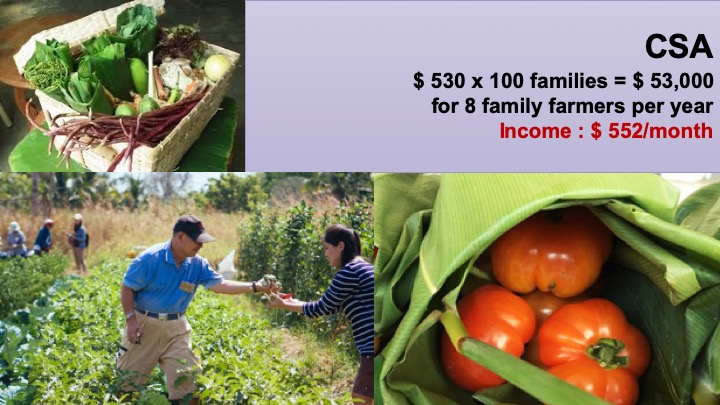 This model is the current CSA development in Thailand. The Thai School Lunch Program was initiated in Chomphra community in Surin province. It is currently working with 100 schools.