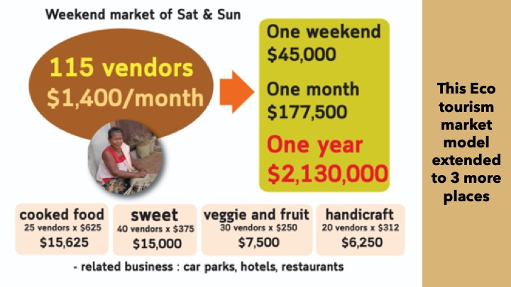 This indigenous market is in the central part of Thailand which began in 2003. They are the Karen indigenous group with 8-10 farmer families and Bangkok-based network of 100 consumer families. They drop off their products in 12 locations and they also organize farm activities. Their income is $552/month.