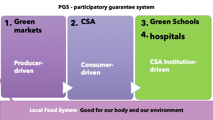 Despite the development, it was insufficient. That was when Consumer Supported Agriculture (CSA) was formed. In fact, Thailand is in this stage now with a more development toward institutional-driven CSA which operates with hospitals and schools. CSA is a consumer-driven market compared to the first model mentioned above.